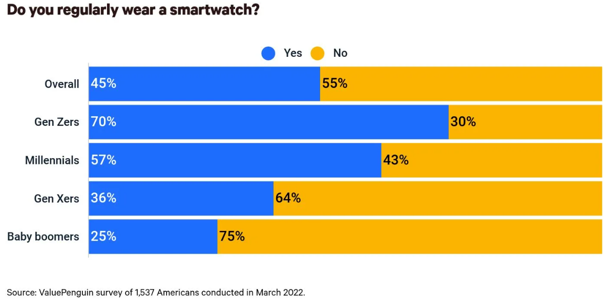 Younger generations adopt wearables at a faster pace than other markets. Source: Value Penguin