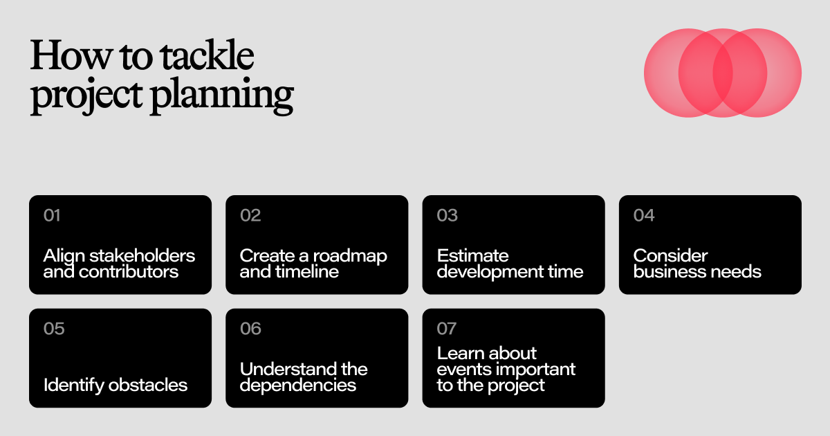 Accurate project planning is one of the critical pillars determining a project's success. A PM’s first responsibility is to set the project's foundation. Here are some important considerations for project planning: